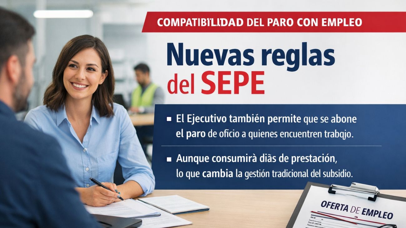 La principal novedad es que el SEPE podrá mantener el pago de la prestación contributiva cuando el beneficiario firme un contrato, sin necesidad de que este solicite expresamente la suspensión. El abono podrá realizarse de manera automática, aunque los días cobrados seguirán descontándose del total reconocido.