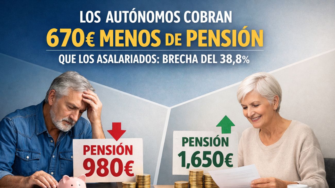 La diferencia entre la pensión de jubilación de los trabajadores autónomos y la de los asalariados vuelve a situarse en el centro del debate público. Según los últimos datos disponibles, quienes han desarrollado su actividad por cuenta propia perciben, de media, 670 euros menos al mes cuando se retiran. Esta distancia representa una brecha del 38,8%, una cifra que refleja un desequilibrio estructural en el sistema de cotizaciones español.